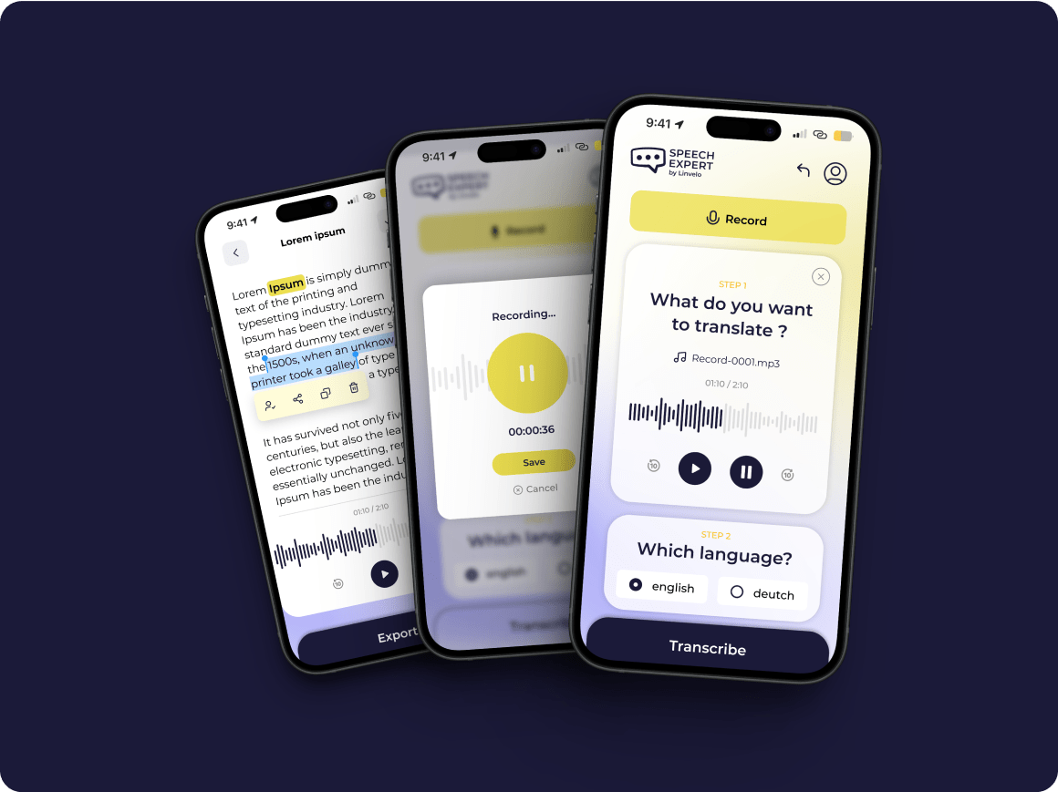 We developed a functional mobile app highlighting the innovative features allowing transcription of audio and video files. The app’s standout feature enables users to add links for social media (Instagram, Facebook, YouTube) transcription subtitles, providing ease in accessibility and understanding.