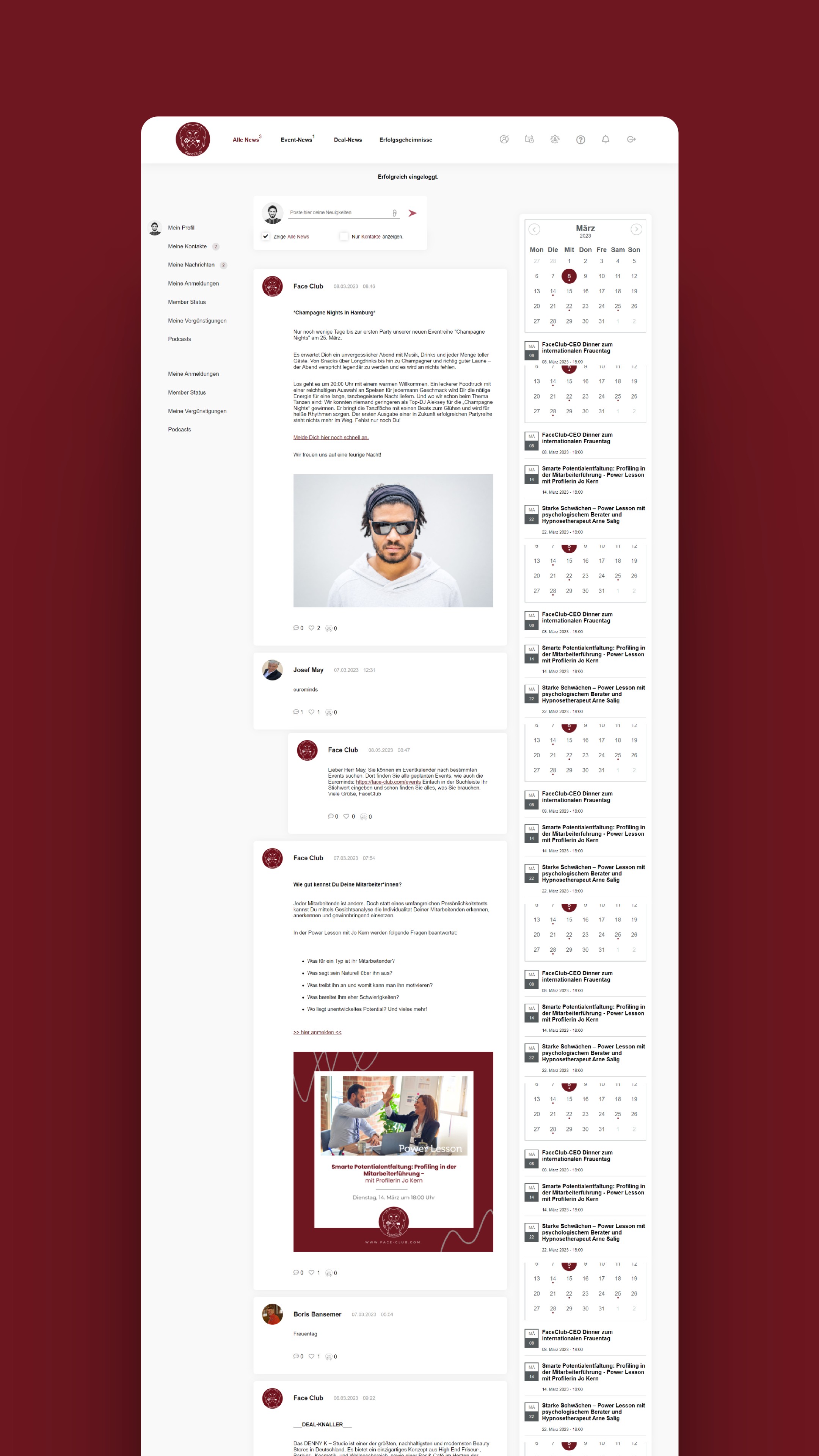 Face-Club.com ist ein exklusiver Mitgliederclub, der seiner Community seit 2019 einen Raum bietet, in dem die Bedürfnisse und Interessen der Mitglieder im Mittelpunkt stehen und in dem gegenseitige Unterstützung gefördert wird. Mitglieder erhalten u.a. exklusiven Zugang zu besonderen Veranstaltungen.