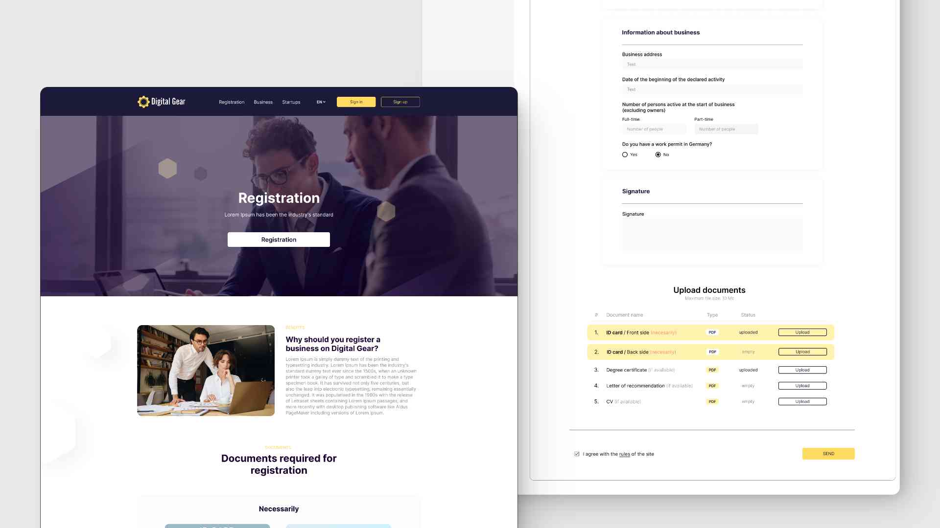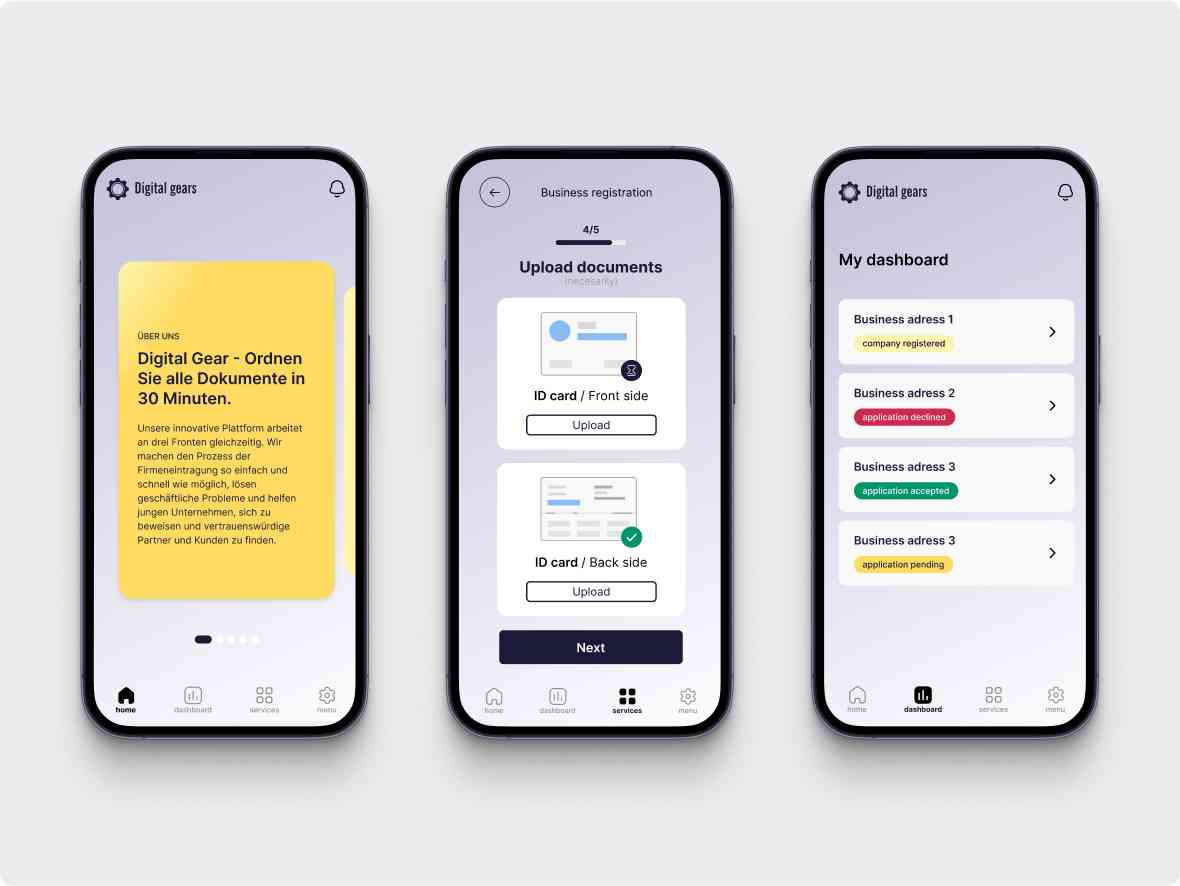 Digital Gears entwickelte ein MVP-Produkt: eine Web-App zur Vereinfachung der Smart–City-Zusammenarbeit mit lokalen Behörden. Als umfassende Plattform fördert sie schnelle Berichte über lokale Probleme, ermöglicht die Registrierung von Unternehmen innerhalb von 30 Minuten und fungiert als Brücke zwischen Fachleuten und Kommunalverwaltungen. Die Lösung bedient mehrere Felder gleichzeitig: Ihre Leistung vereinfacht die Unternehmensregistrierung, unterstützt bei geschäftlichen Herausforderungen wie z.B. der Unternehmens-Etablierung sowie bei der Suche nach vertrauenswürdigen Partnern, Kunden und qualifizierten Arbeitskräften.